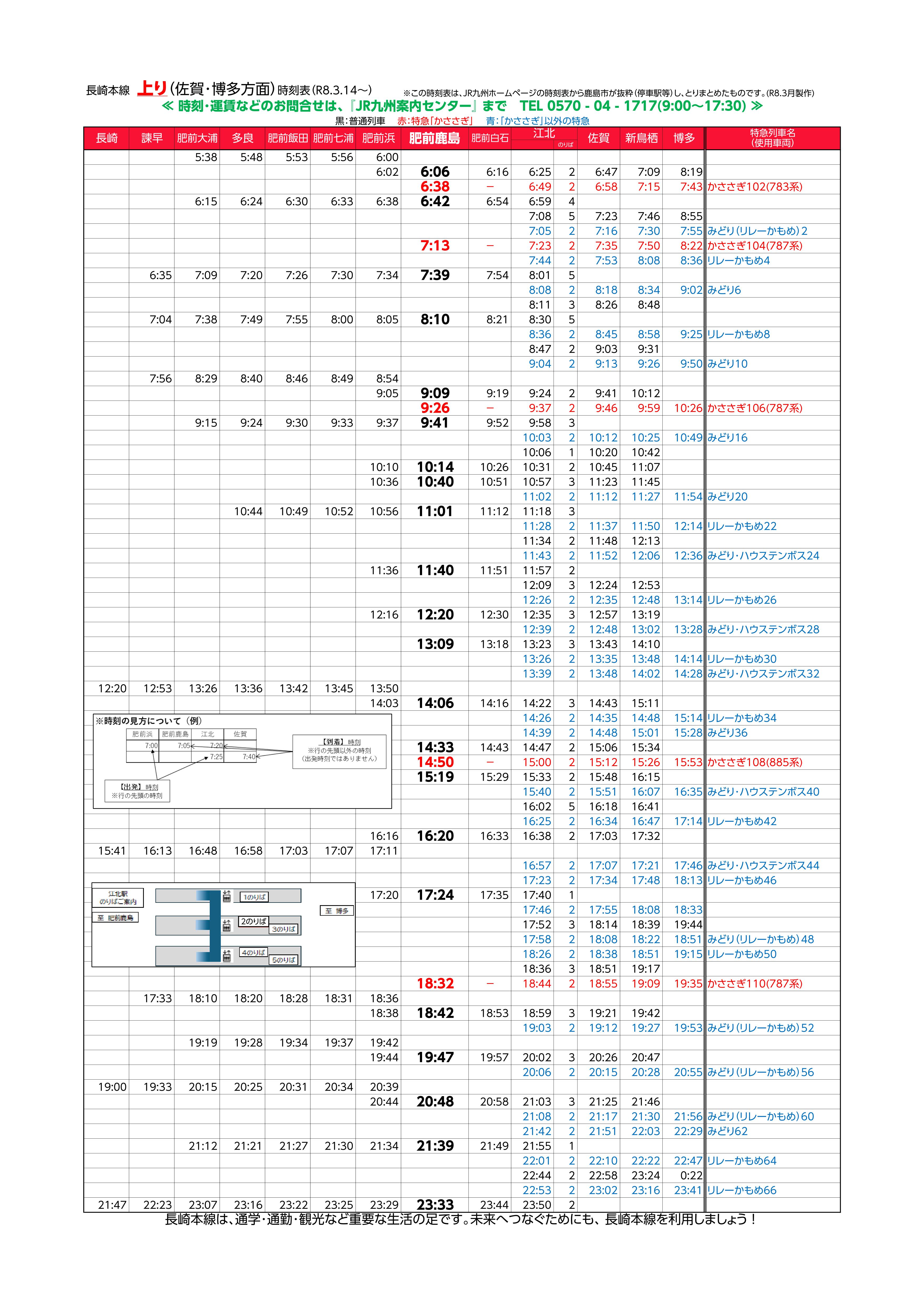 長崎本線 上り(佐賀・博多方面)・下り(多良・長崎方面)(PDF 534KB)
