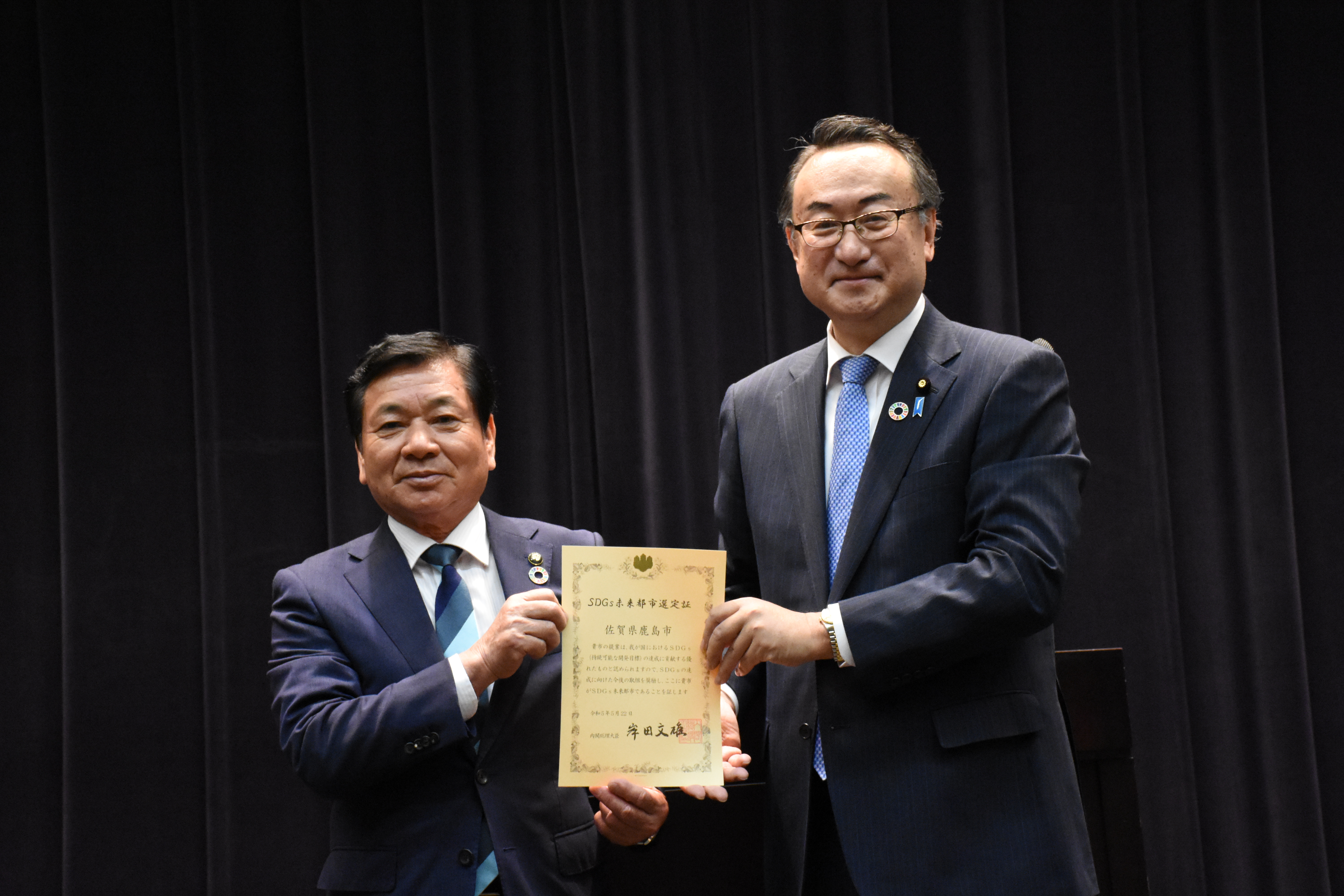 平成28年度よりローカルSDGsの推進を行ってきましたが、この度その取組が評価され、内閣府の「SDGs未来都市」に選定されました。5月22日(月)に内閣府において認定授与式が開催され、市長が認定を受けました。全国でSDGs未来都市の選定をされたのは28都市(28自治体)、佐賀県では初めてとなります。