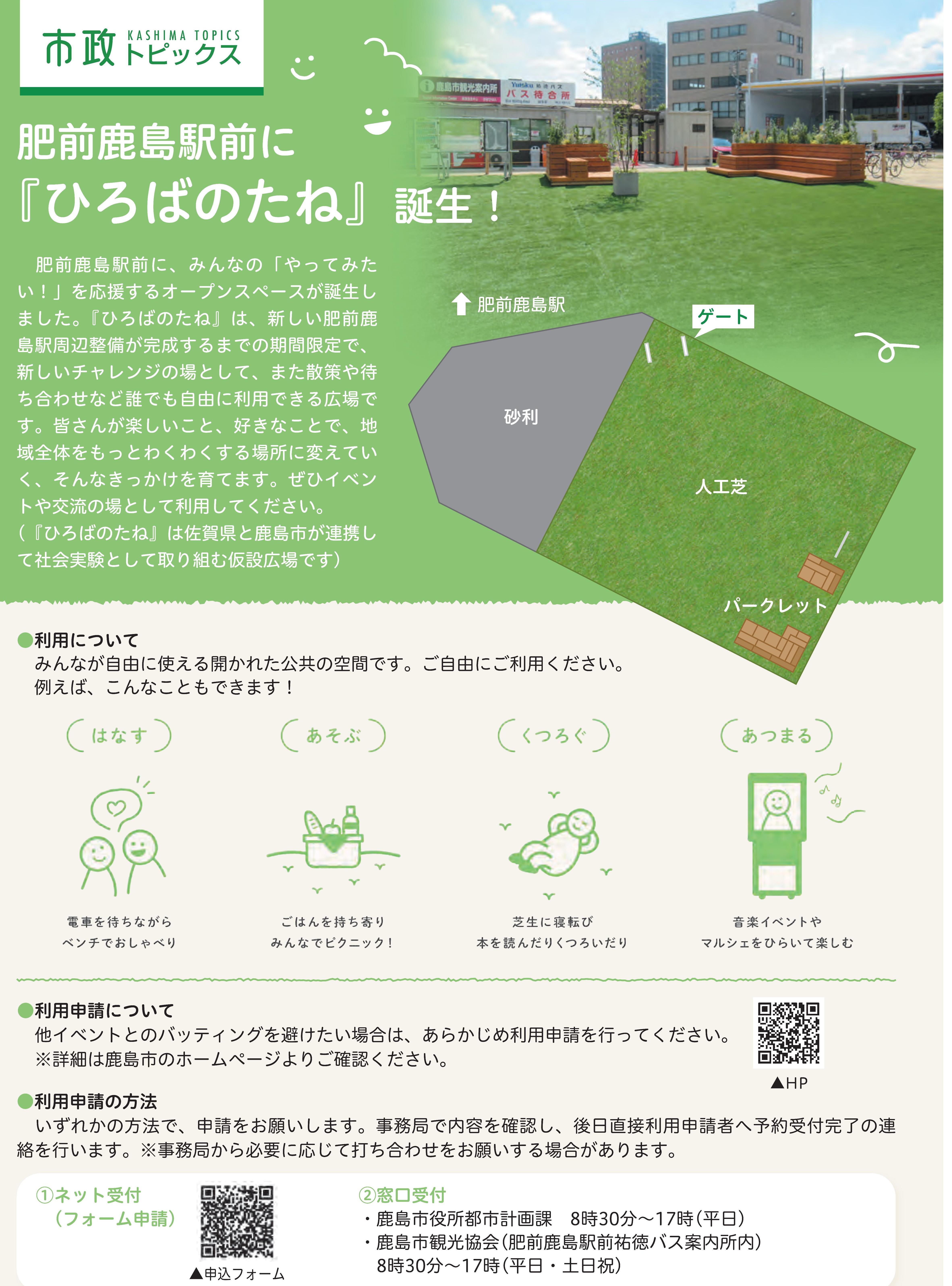 (※「ひろばのたね」は社会実験として佐賀県と鹿島市、各団体が共同で実施しています)