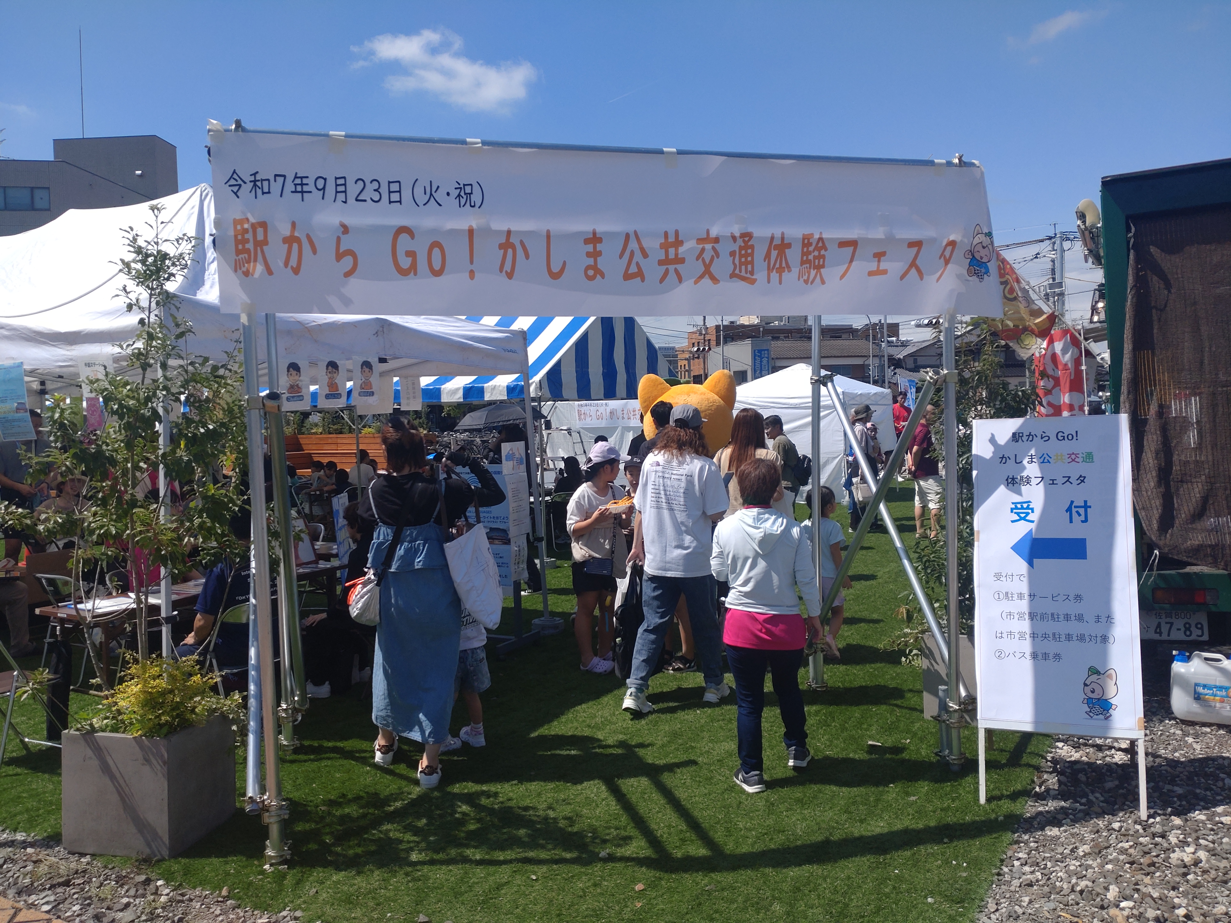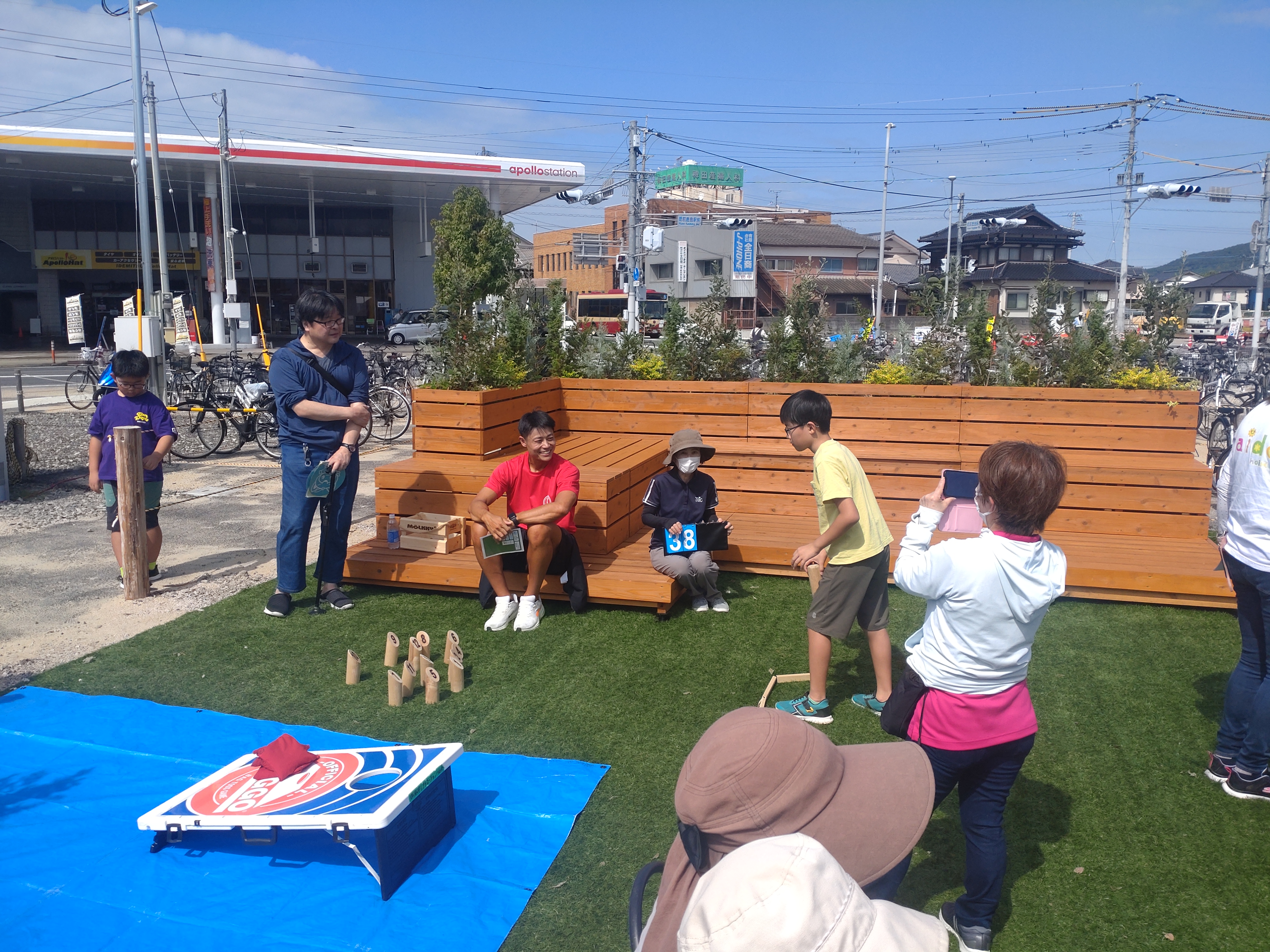 ひろばのたねは皆さんが自由に使えるオープンスペースです。9月23日には「かしま公共交通フェスタ」が開催されましたが、ミニステージの設置やキッチンカー、テント、パークレット付近ではゲームなどが開催されました。ひろばのスペースを有効に使って、自分たちの「やってみたい」をかなえましょう!