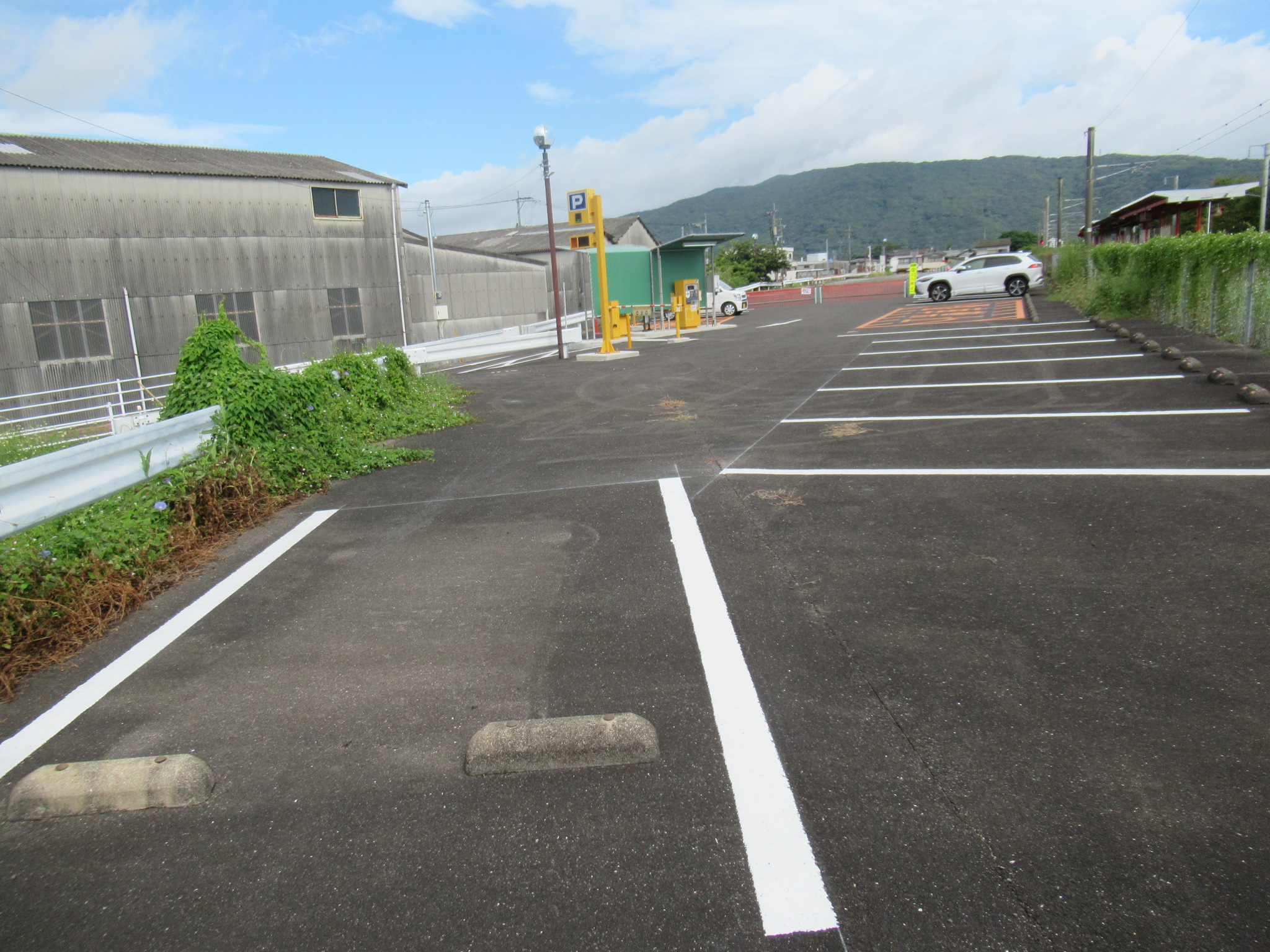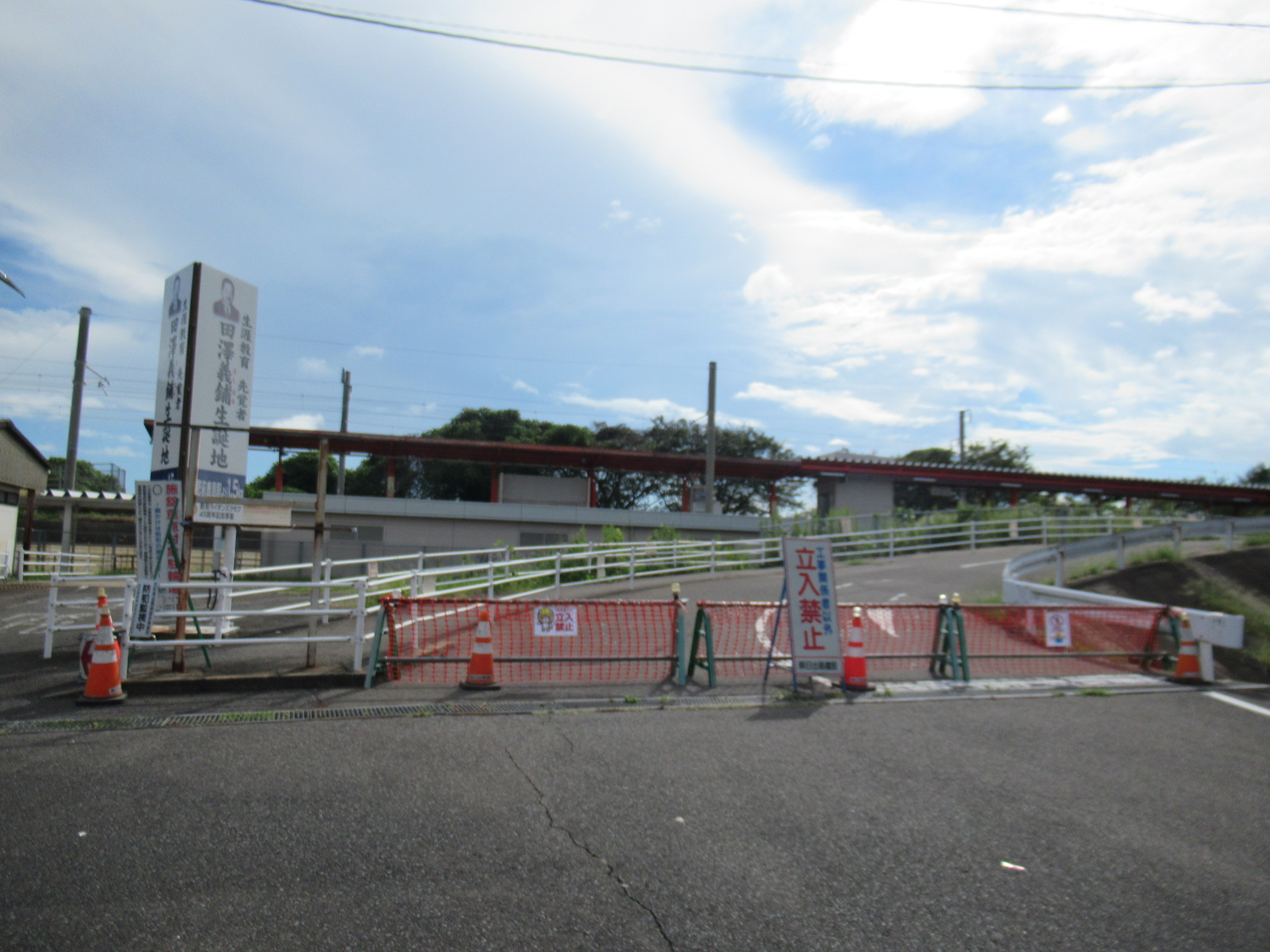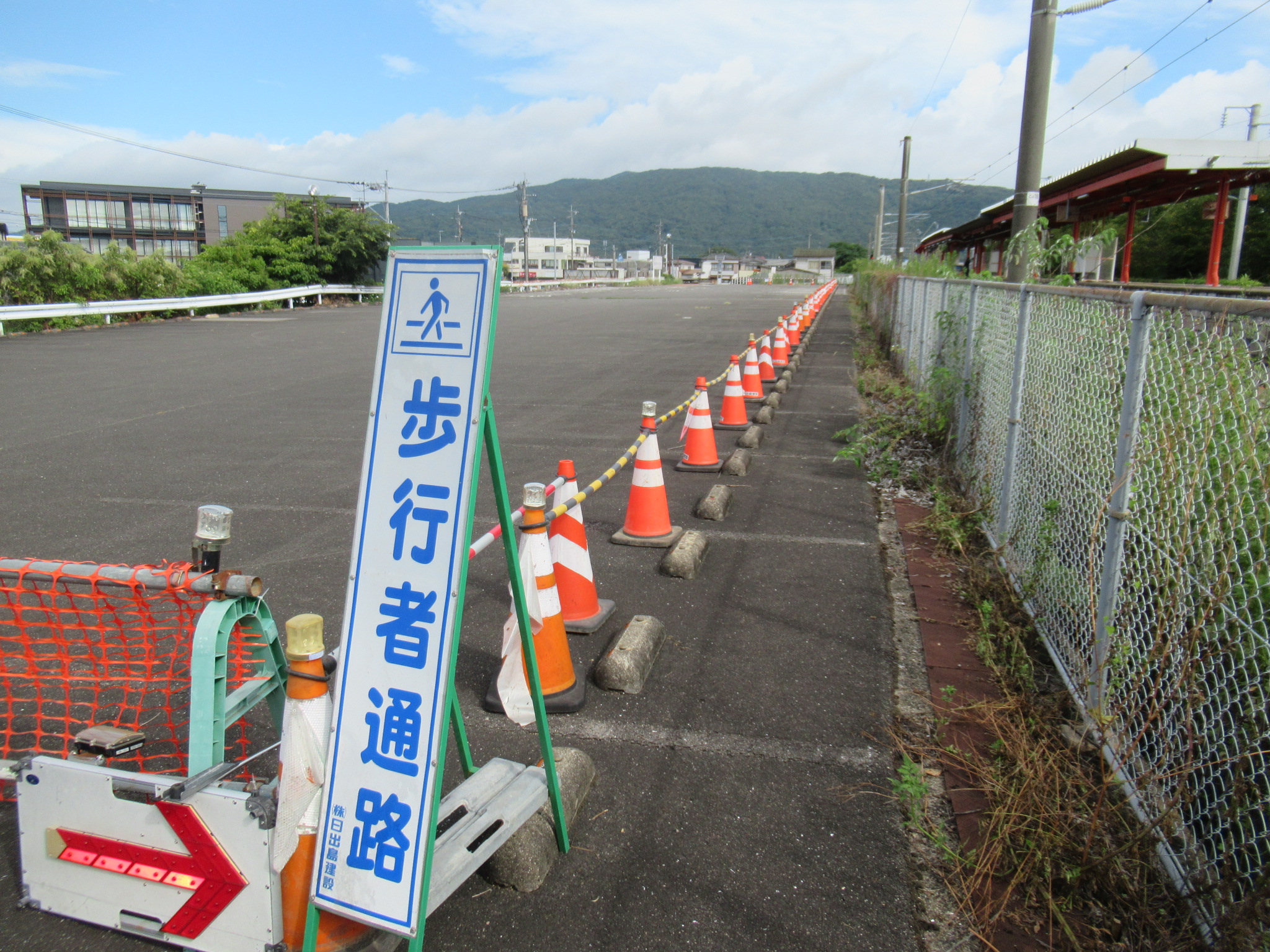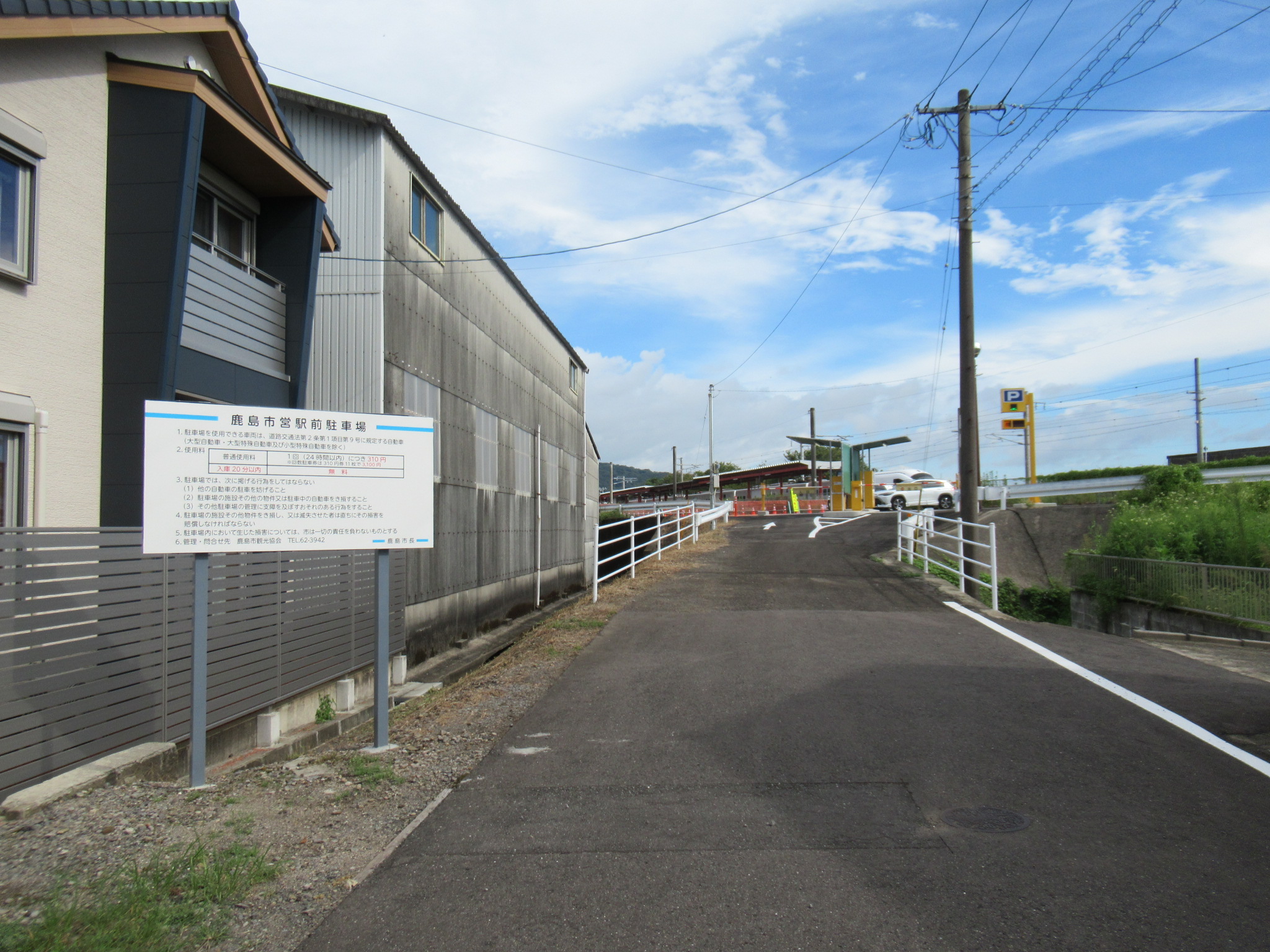 肥前鹿島駅周辺整備に伴い、駅前の市営駐車場のこれまでのスロープゲートが閉鎖され、栗山組社屋の裏手からの出入りに変更されています。