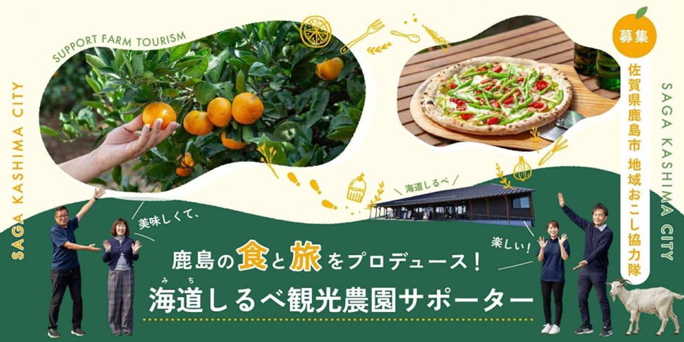 地域おこし協力隊『海道しるべ(※1)観光農園サポーター』を募集いたします。テーマは、食と旅(観光)。豊かな食の宝庫として知られる鹿島市において、6次産業(※2)化の一例となる観光農園をサポートしていくために、