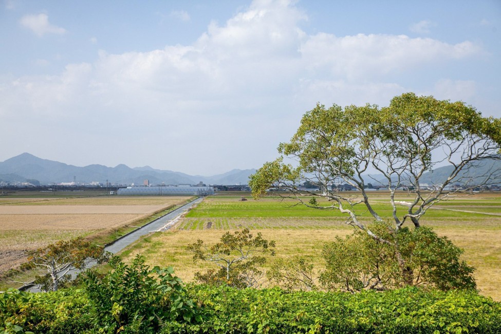 海からすぐの、山の上。穏やかな農村風景が、海岸線と並行するように連なっています。