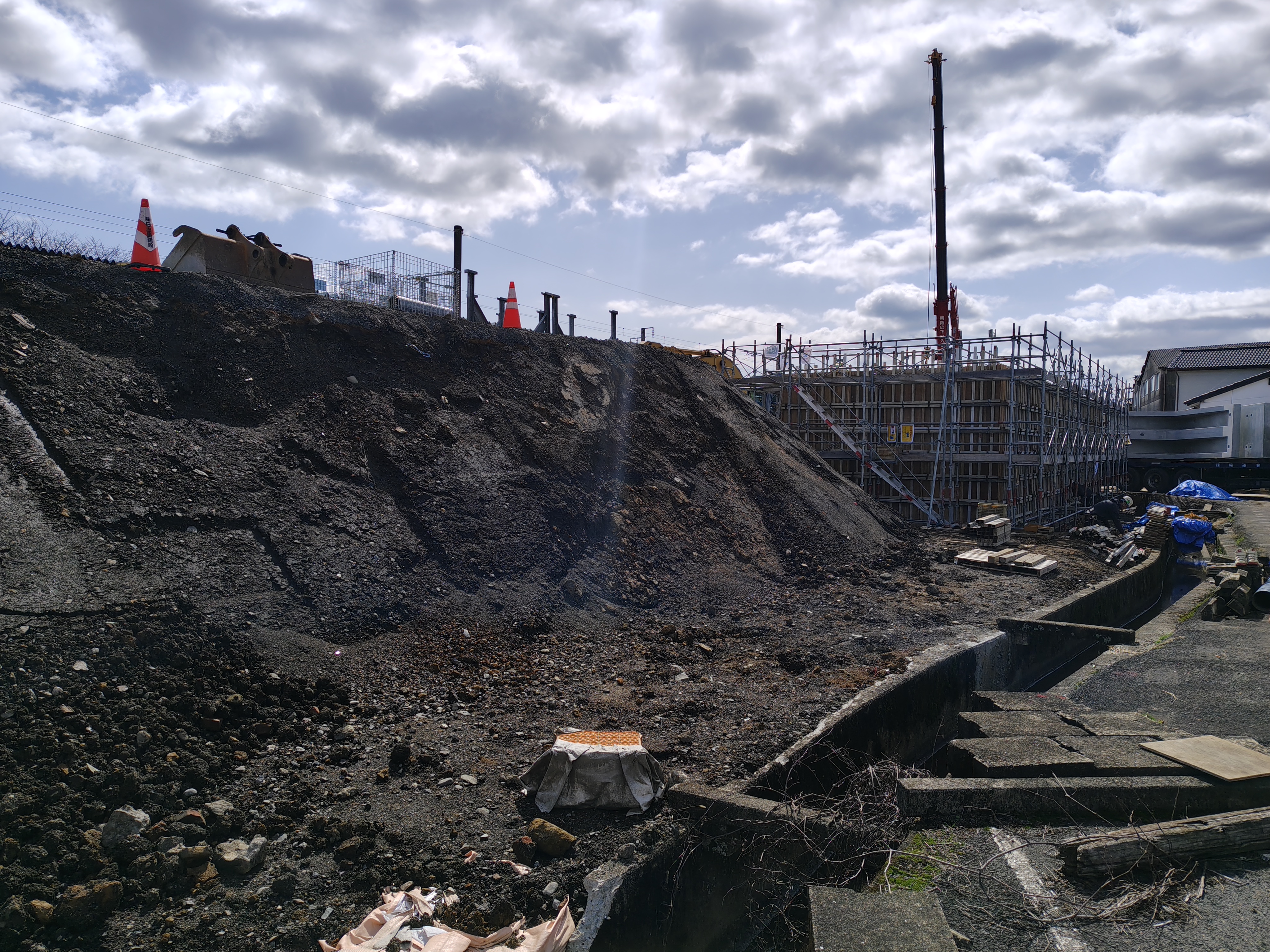 ■新駅舎の造成工事(地盤改良・擁壁工事等)