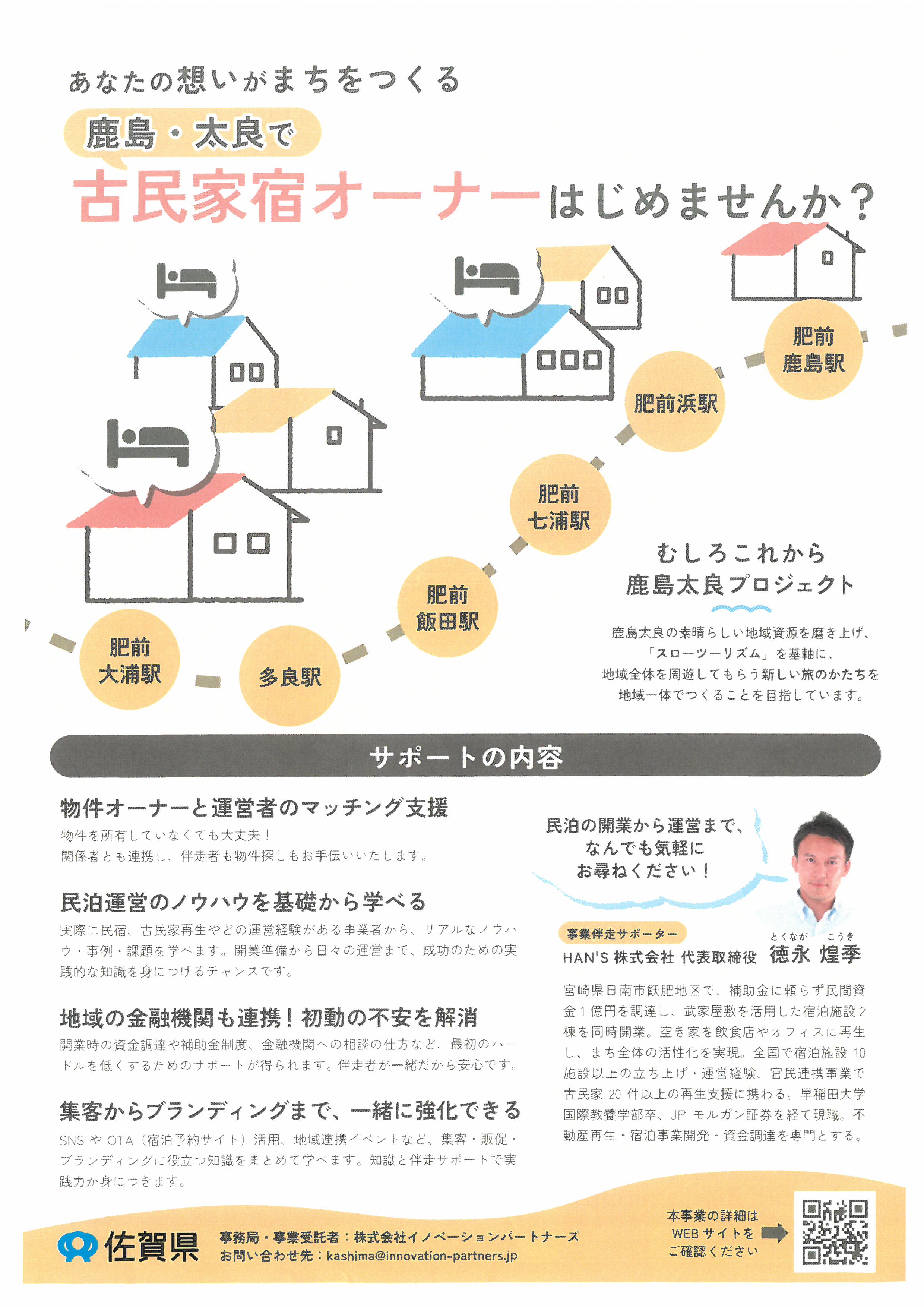 実際に日南市で宿泊事業を展開されている徳永氏より様々な伴奏支援を受けられますので、ぜひご相談ください。