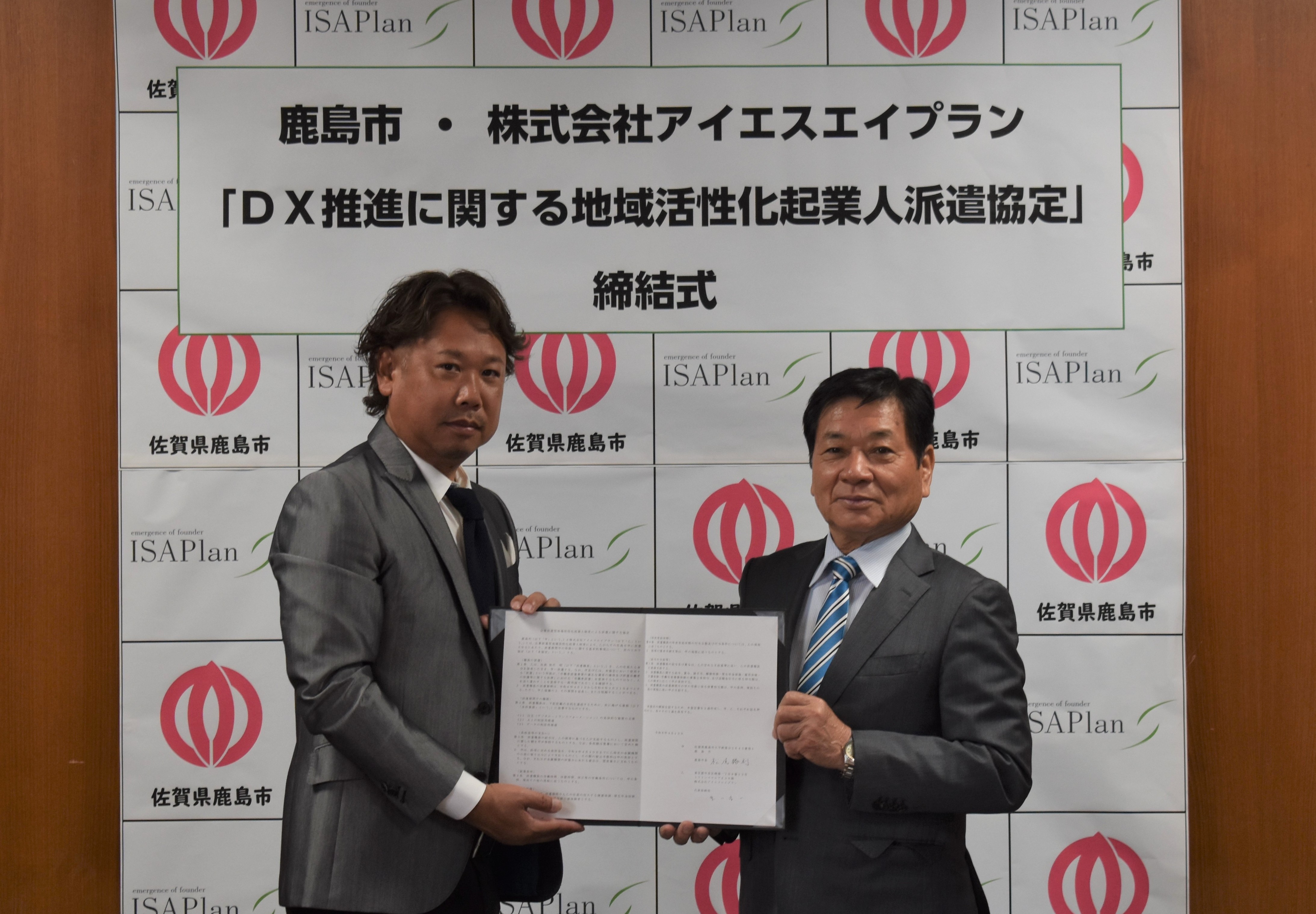 令和8年4月13日、鹿島市と株式会社アイエスエイプラン(本社:東京都中央区、代表取締役社長 糸川淳一)は、DX推進に関する地域活性化起業人制度に関する協定を締結しました。
